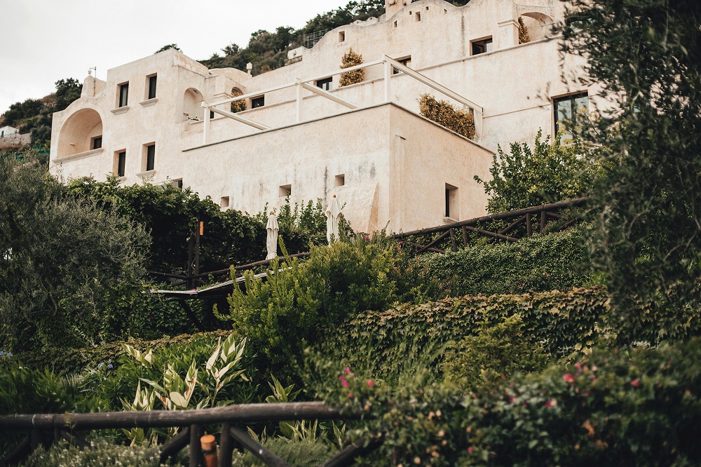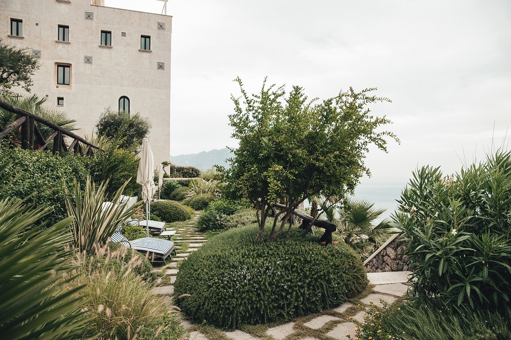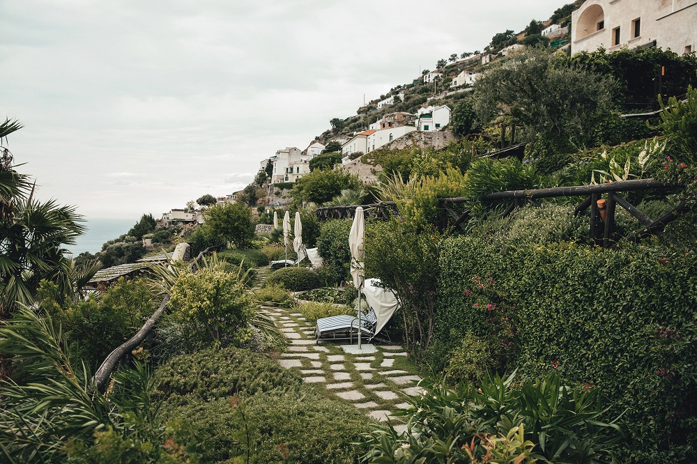 Viešbučio teritorijos parkas, laiptinėmis pakopomis suskaidytas į skirtingas dalis, kas itin būdinga Amalfi pakrantės kraštovaizdžiui. Kur beeitumėte sups visur užburiantys vaizdai. Žaluma susilieja su šviesiu viešbučio mūru, o vaizdai į jūrą ir miestelius suteikia spalvų. Dvelkia ramybe. Privatumas garantuotas. Taip ir įsivaizduoju romantišką vakarienę dviems, medaus mėnesį, sužadėtuves ar kitą šventę.