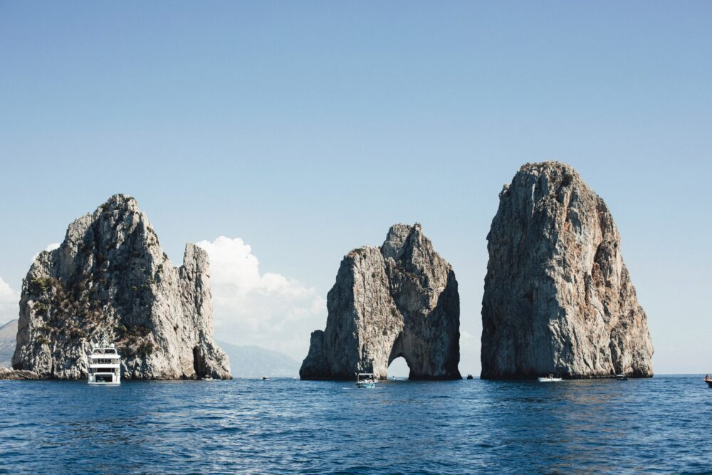 Turbūt esate matę Dolce&Gabbana „Light blue“ kvepalų reklamą, su ikona tapusiomis Faraglioni uolomis, žydro vandens purslais, saulei šviečiant? Ar žinojote, kad kiekvienai iš Kapri salos gigantiškų uolų, buvo suteiktas vardas. Pirmoji netoli salos pavadinta žvaigžde – Faraglione di Stella, antroji nuo pirmojo atskirta vandens liežuviu, vadinama vidurine Faraglione di Mezzo, o trečioji – Faraglioni di Scopolo, iškyšulys jūroje.Nesuklysčiau pavadindama, kad tai žymiausios uolos pasaulyje ir La Dolce Vita gyvenimo simbolis ne tik Kapri saloje, bet ir pasaulyje.