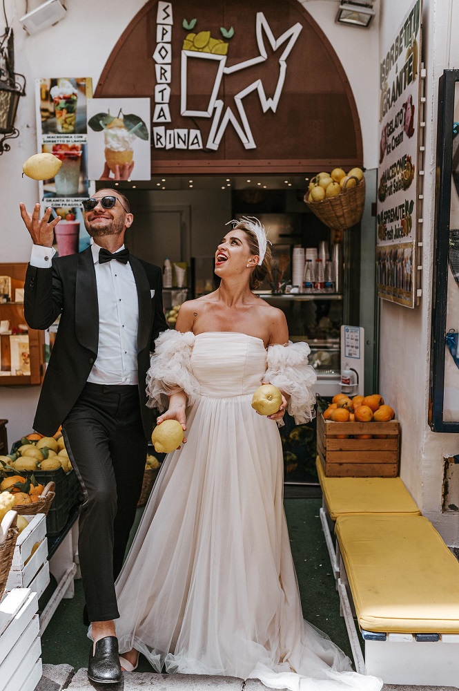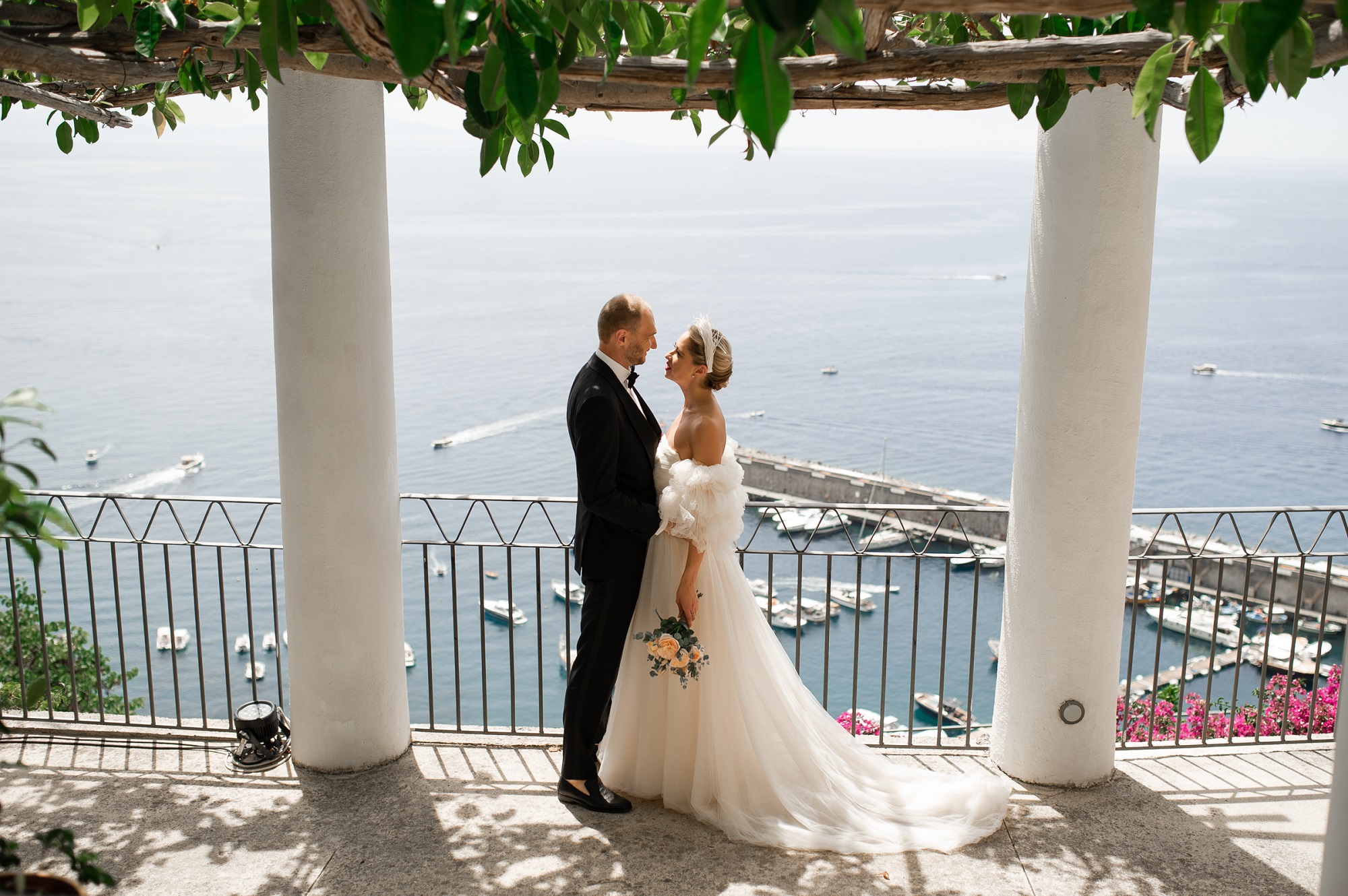Gražiausio istorinio Amalfi miesto viešbučio fonas, nepriekaištingi vaizdai į žydrus ir banguotus vandenis, ryški saulė, tekanti per žaliai vešlias citrinmedžių giraites ir besiskverbianti tiesiai į jaunųjų elegantišką terasą, iš kurios atsiveria vaizdas į visą miestą ir pagrindinį uostą, su plaukiojančiais laivais, spindinčiais ryto šviesoje… Taip nepaprastai, visų šių vaizdų apsupty Agnė ir Ernestas pradėjo savo vestuvių rytą Amalfi pakrantėje.