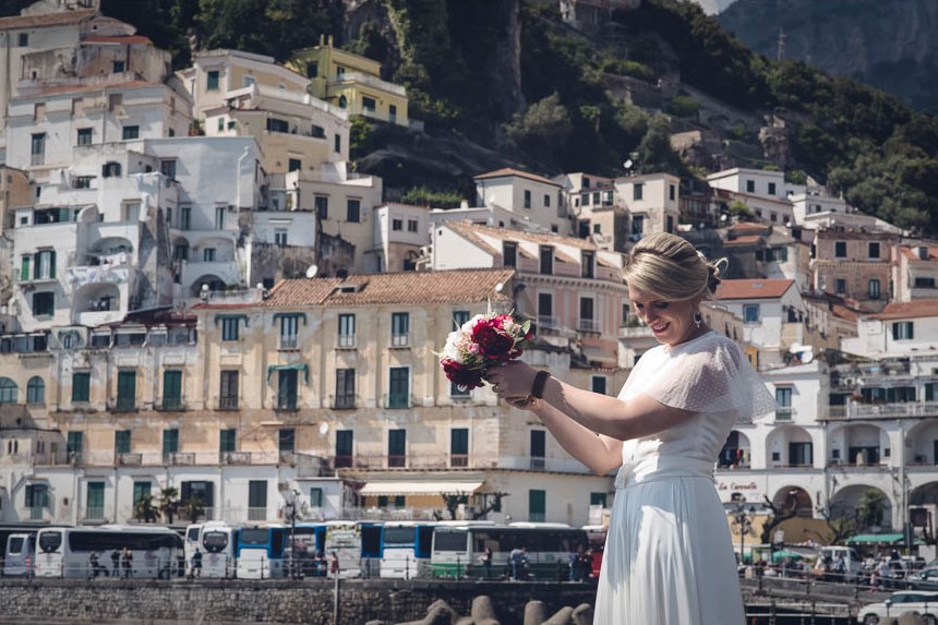 Esame buvę Italijoje ir dar ne kartą, ateityje planuojame lankytis. Mums patinka Italijos kultūra, maistas, aptarnavimas, nuostabi gamta ir žmonės, todėl ir nusprendėme tuoktis čia, nes nenorėjome kelti tradicinių vestuvių Lietuvoje. Norėjome šventės sau, pagal mūsų norus ir kartu paatostogauti su artimaisiais. Amalfio pakrantę išsirinkome dėl atsiliepimų internete ir niekur kitur nepasikartojančių gamtos vaizdų. Ir dėl emocijų, tų tokių itališkų, kurios suvirpina širdį. Jokių didelių sunkumų kaip ir nebuvo, tik vienintelis, kad teko pasitikėti viskuo, kas bus suorganizuota. Mažai galimybių viską susiderinti patiems. Turėjome tikėti, kad viskas bus taip kaip įssivaizduojame, nes planuojant per atstumą kitos išeities nėra. O kaip tikėjomės, kad viskas bus gerai, taip ir viskas buvo puiku.