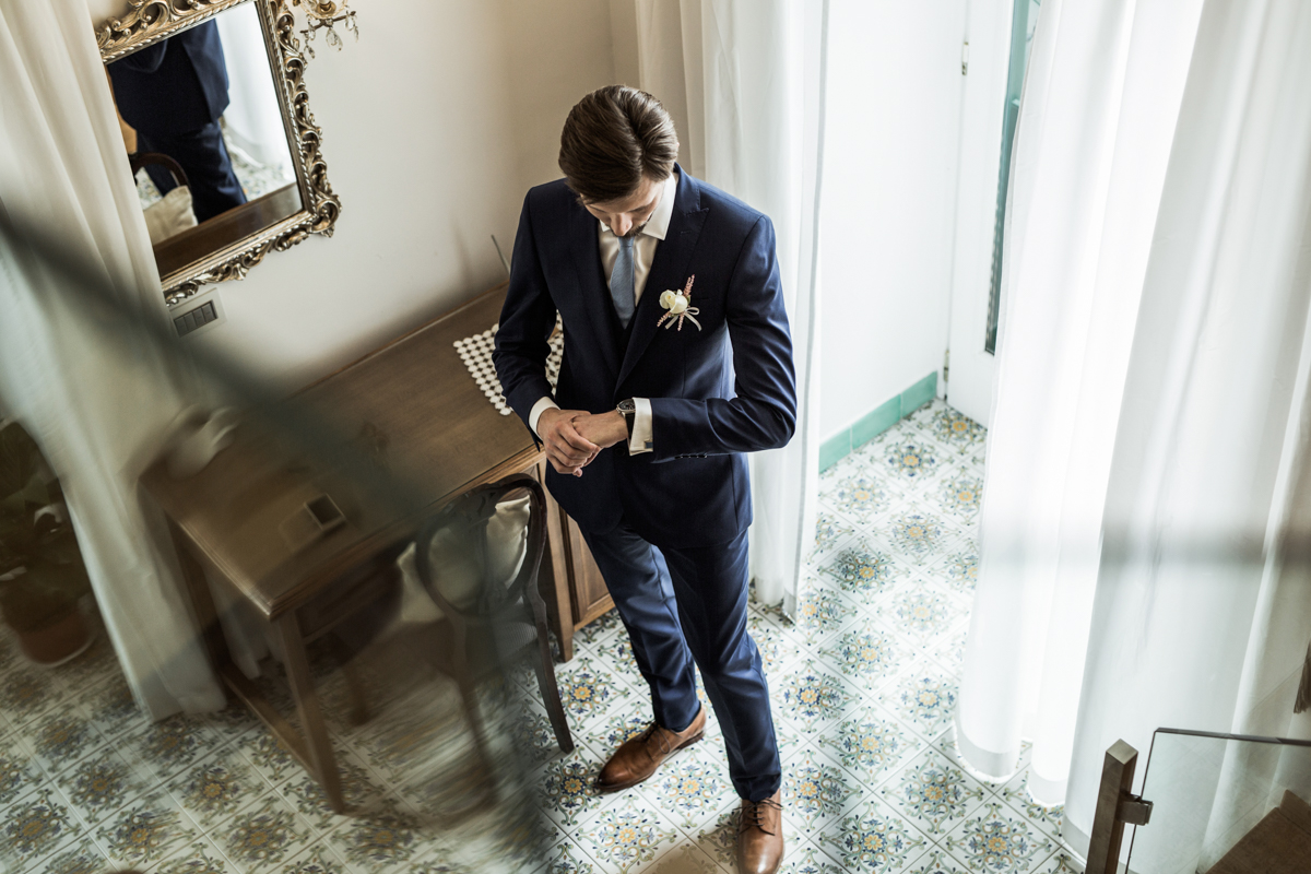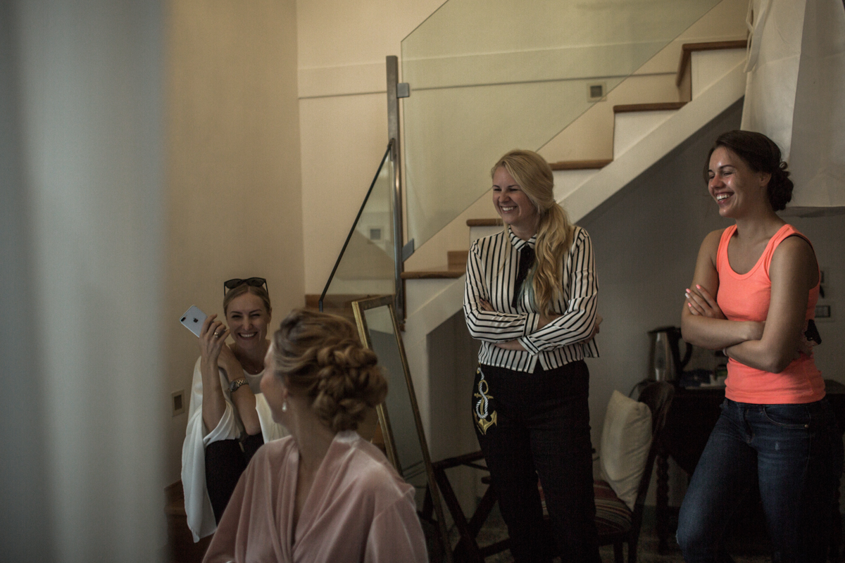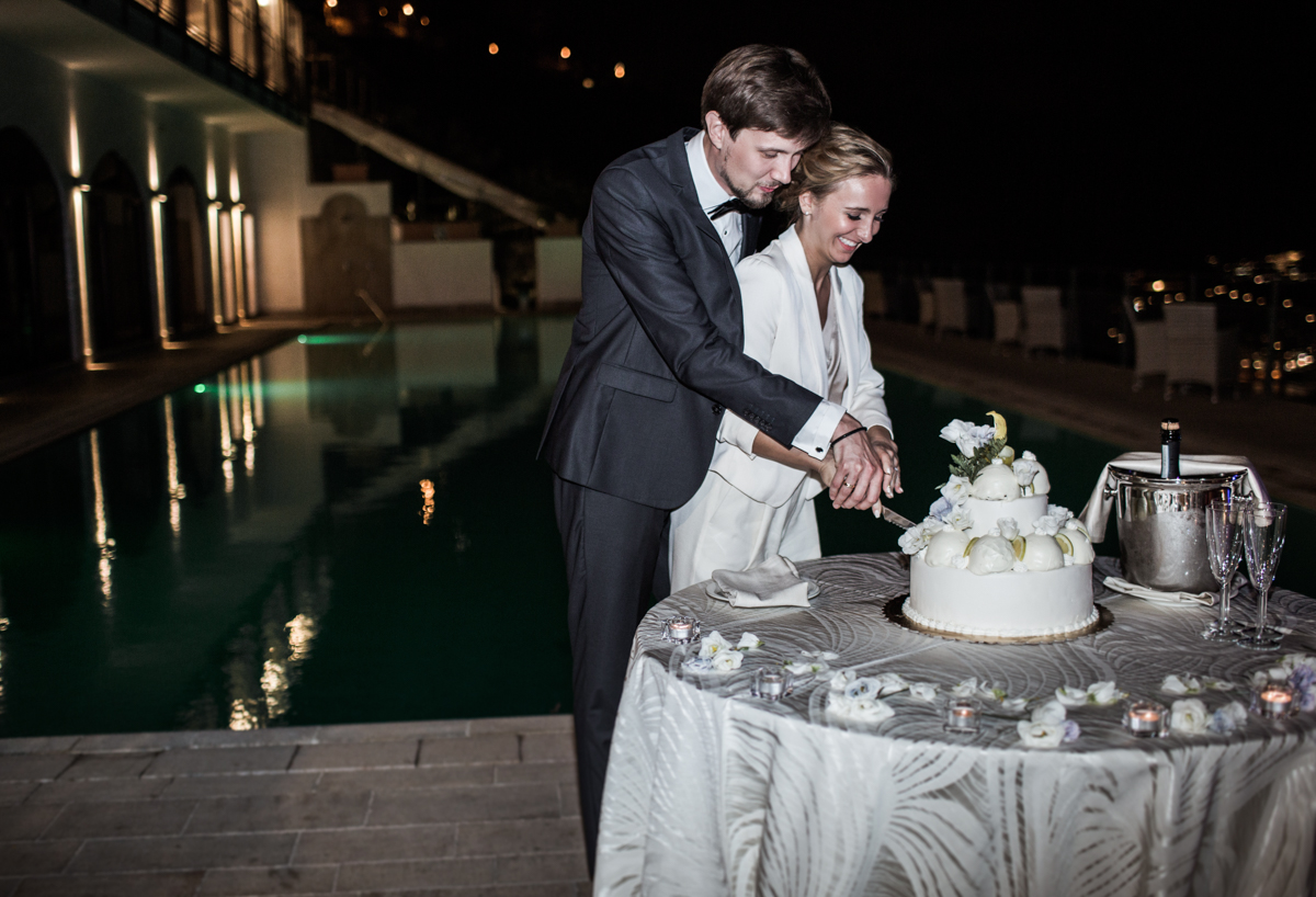 Vestuvių diena buvo pilna nuostabių akimirkų. Jaukus pasiruošimas prieš ceremontiją, kai visos moterys susirinkom kartu ir trys stilistės visą rytą mus puošė. Labai smagiai praleidome laiką ir pavyko sumažinti jaudulį prieš ceremoniją. Įsiminė ir visų Amalfyje esančių žmonių ir turistų reakcijos, atrodė, kad visi aplinkui švenčia ir džiaugiasi kartu su mumis. Jausmas buvo neapsakomas, vien tik geros emocijos, palinkėjimai ir šypsenos. Nemanau, kad Lietuvoje ar kurioj kitoj šaly būtume galėję to sulaukti. Po bažnytinės ceremonijos, mūsų laukė trumpas itališkas aperityvas užkandžiai, o paskui pasidžiaugę saule, jūra ir nuostabiais vaizdais plaukiojant jachta palei visą Amalfi pakrantę, važiavom jaunųjų fotosesijai į villa Ruffolo sodus Ravelo mieste, o paskui į vakarienės vietą, kuri buvo neapsakomo grožio! Visi svečiai ir mes buvom sužavėti aplinka. Apskritai kiekviena detalė buvo apgalvota: stalo papuošimas, maistas ir jo patiekimas, gyvo garso grupė… Viskas tobula ir labai itališka.