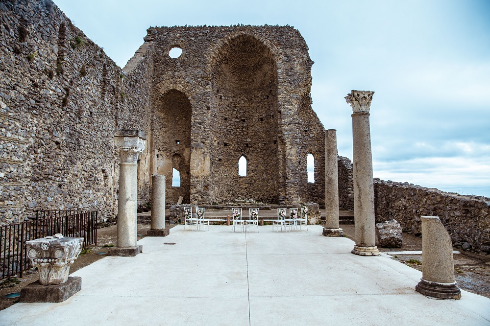 Palieskite dangų savo vestuvių dieną ir būkite dar aukščiau nei trys metrai! Vieta skirta išskirtiniam jūsų TAIP, pasiekiama einant keliuku pėstute apie 15 minučių. Amalfi pakrantėje, Scala miestukas, buvo seniausias Amalfi jūrinėje kunigaikštystėje. XII amžiuje buvo pastatyta įstabi S. Eustachio bažnyčia. Bazilika turėjo pagrindinį kriptą ir buvo orientuota, kaip ir visos viduramžių bažnyčios, į rytus. Ant išorinės sienos dar likę dekoracijų, kurie atseka žvaigždžių motyvus. Išilgai šoninių sienų siauri langai, saulės šviesos pasiskirstymui.