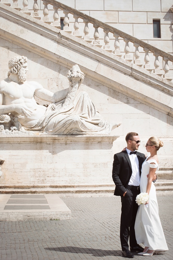 Švęsdami savo vestuves Romoje, Jūs prisiliečiate prie tūkstantmečių istorijos, kuri prasidėjo Senovės Romoje. Pagal legendą, vilkė išaugino dvynukus Romulą ir Remą, kurie įkūrė Romos miestą ant septynių kalvų. Jaunųjų vestuvinė fotosesija vyksta ant svarbiausios Kapitolijaus kalvos. Čia buvo meldžiamasi senovės dievams, Romos forume kalbėjo ir pergales šventė Julijus Cezaris, o Senatas priimdavo įstatymus. Tai buvo ne tik religijos centras, bet ir valdžios galios simbolis Romos Respublikos, o vėliau ir imperijos. Į Kapitolijaus kalvą, kur šiandien yra Romos savivaldybė it. Palazzo dei Conservatori, veda didieji it. Cordonata laiptai, pastatyti pagal Mikelandželo projektą. Užlipus laiptais, pateksite į kitą Mikelandželo suprojektuotą erdvę – integrališkiausią ir harmoningiausią iš visų Romos aikščių – Kapitolijaus aikštės ansamblį. Centre ant pjedestalo stovi bronzinė Marko Aurelijaus skulptūra ant arklio. Aikštės gale ant senųjų it. Tabularium griuvėsių pastatyti Senatorių Rūmai it. Palazzo Senatorio. Dabartinių Naujujų Rūmų it. Palazzo Nuovo rūmų fasadą sukūrė kitas žymus italų architektas Giacomo Della Porta. Susipažinus su amžinojo miesto istorija, fotosesiją tęsiame keliaudami (jaunuosius visada veža privatus vairuotojas) į žaliausią, paslaptingiausią Romos kalvą – Aventino. Karšta vasaros dieną galima atsigaivinti parke ir įkvėpti svaigaus apelsinų žiedų aromato, bei būtinai sustoti pažiūrėti pro Maltos ordino riterių rakto skylutę į Vatikaną.