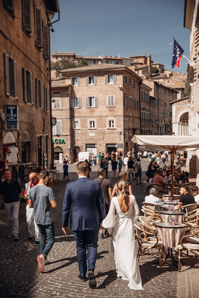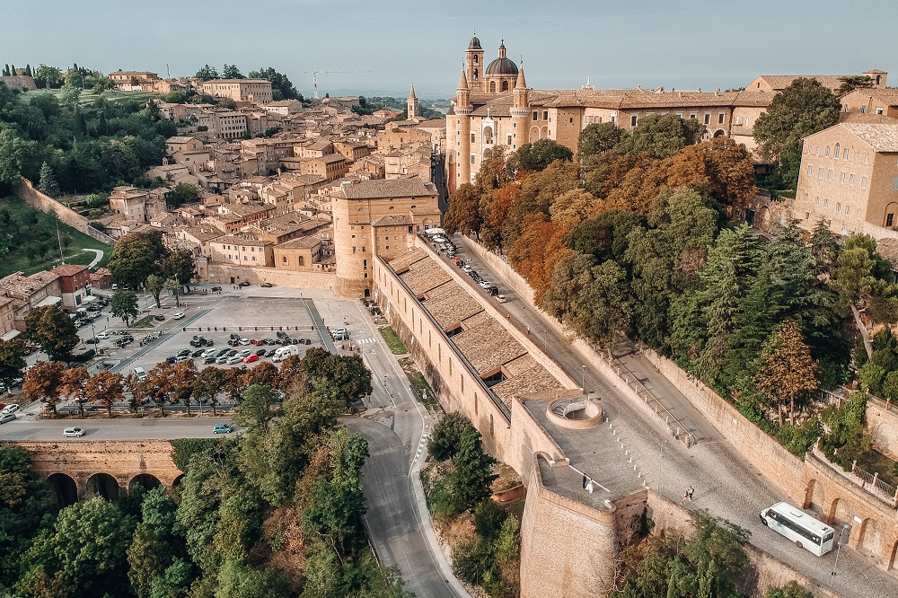 Urbino – sunkiai pasiekiamas miestas, į kurį veda vingiuotas SS423 kelias, kuriuo važiuojant nenustembi, kodėl italas Valentino Rossi, žymiausias visų laikų Motociklų sporto pasaulio čempionas, gimė čia. Taip pat ir žymiausias madonų tapytojas Raffaello Sanzio gimė čia. Šis dar mažai atrastas miestas – tikras perliukas, pritraukia italų architektūros, istorijos ir meno mylėtojus iš viso pasaulio. Urbino yra svarbiausias itališko Renesanso centrų, dėl savo įstabios architektūros 1998 m. įtrauktas ir į UNESCO paveldo sąrašą. Į šį miestą traukia ne tik turistai, bet ir daugelis studentų, norėdami studijuoti viename seniausių pasaulio Universitetų „Carlo Bo“. Į šį miestą pirmą kartą Orinta su Domantu atkeliavo pagal Erasmus mainų programą. Čia gimė jų meilė, todėl savo vestuvėms Italijoje, jie pasirinko būtent šį miestą, kurio kiekvienas kampelis jiems yra savas.