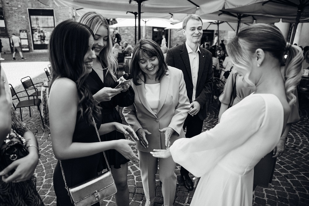 Italai labai džiaugiasi ir didžiuojasi, kad užsieniečiai tokią ypatingą savo gyvenimo dieną – vestuvėms, renkasi būtent jų šalį ištarti lemtingajam TAIP. O išgirdę jaunųjų meilės istoriją, gimusią tarp Urbino pilies mūro sienų ir susijusią būtent su jų miestu, maloniai paprašė Orintos ir Domanto poros duoti interviu vietiniam laikraščiui ir net televizijai apie jų pasirinkimą ir istoriją. Kaip gražu mokėti džiaugtis už kitus!
